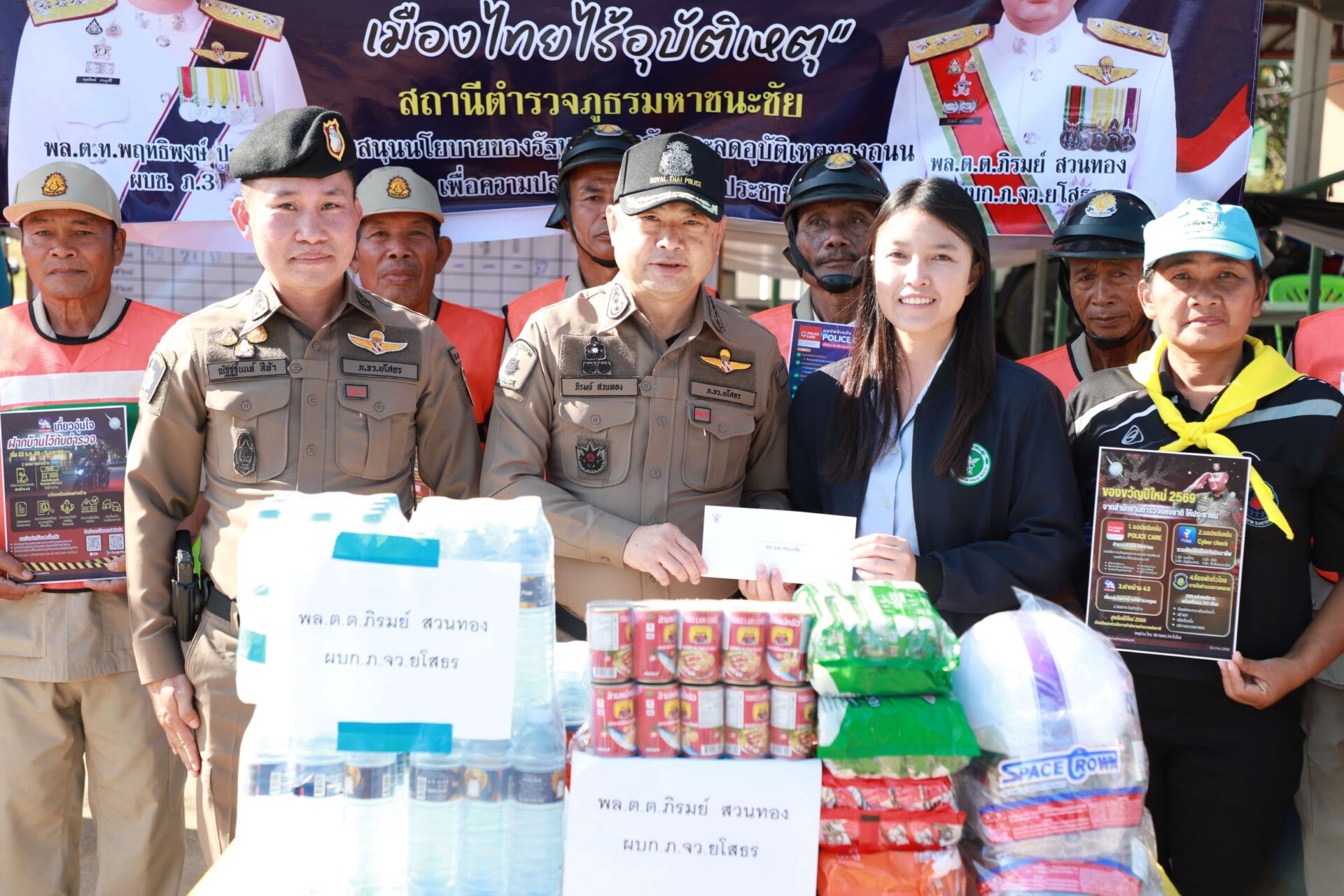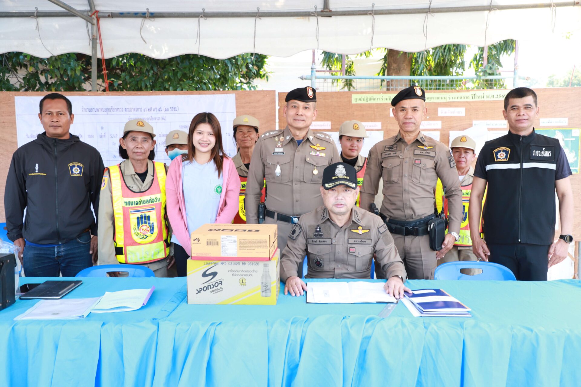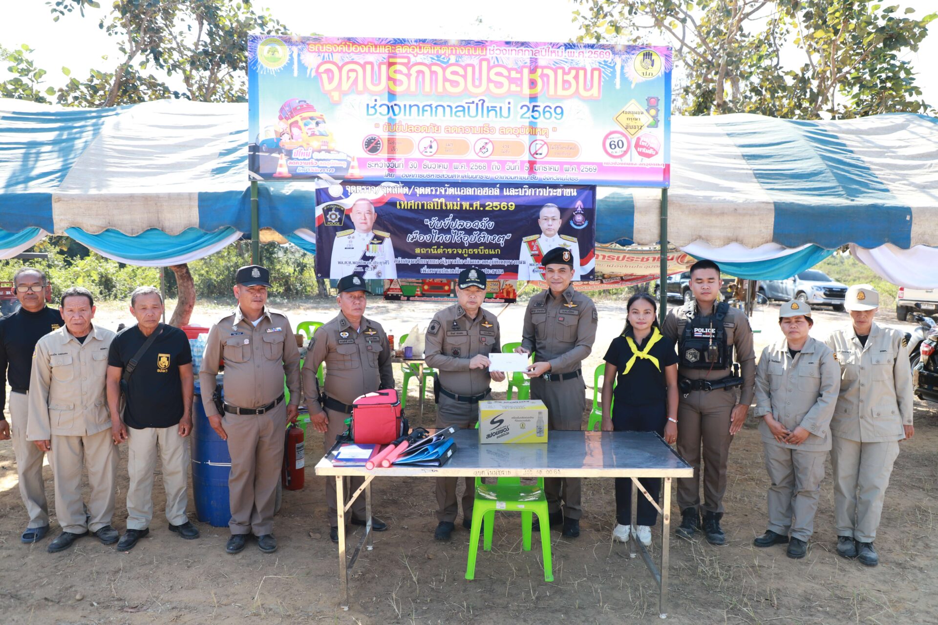 ได้มอบเครื่องดื่มชูกำลังและเงินสนับสนุนเจ้าหน้าที่ประจำจุด ในการนี้ได้ให้นโยบายในการปฏิบัติ ดังนี้