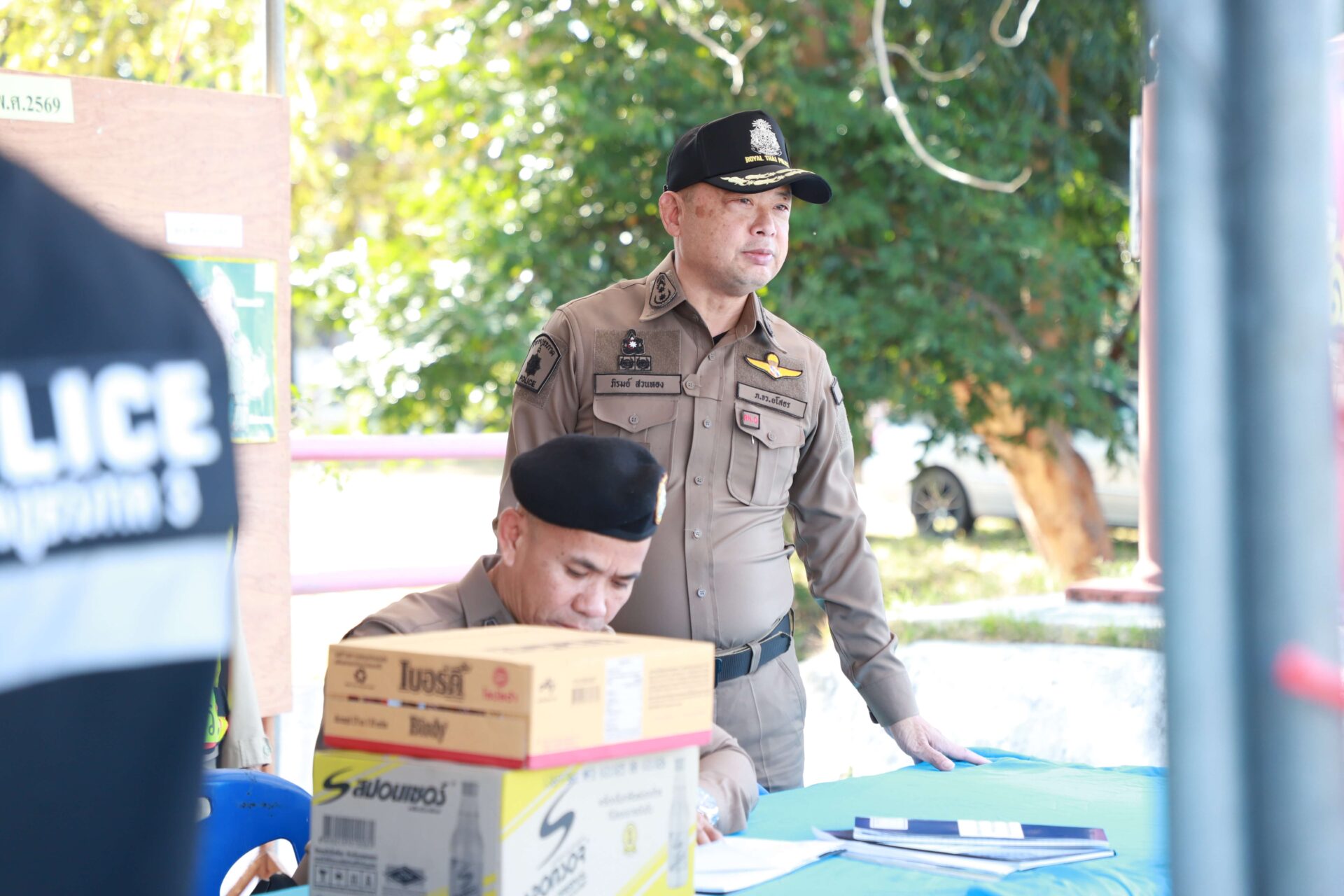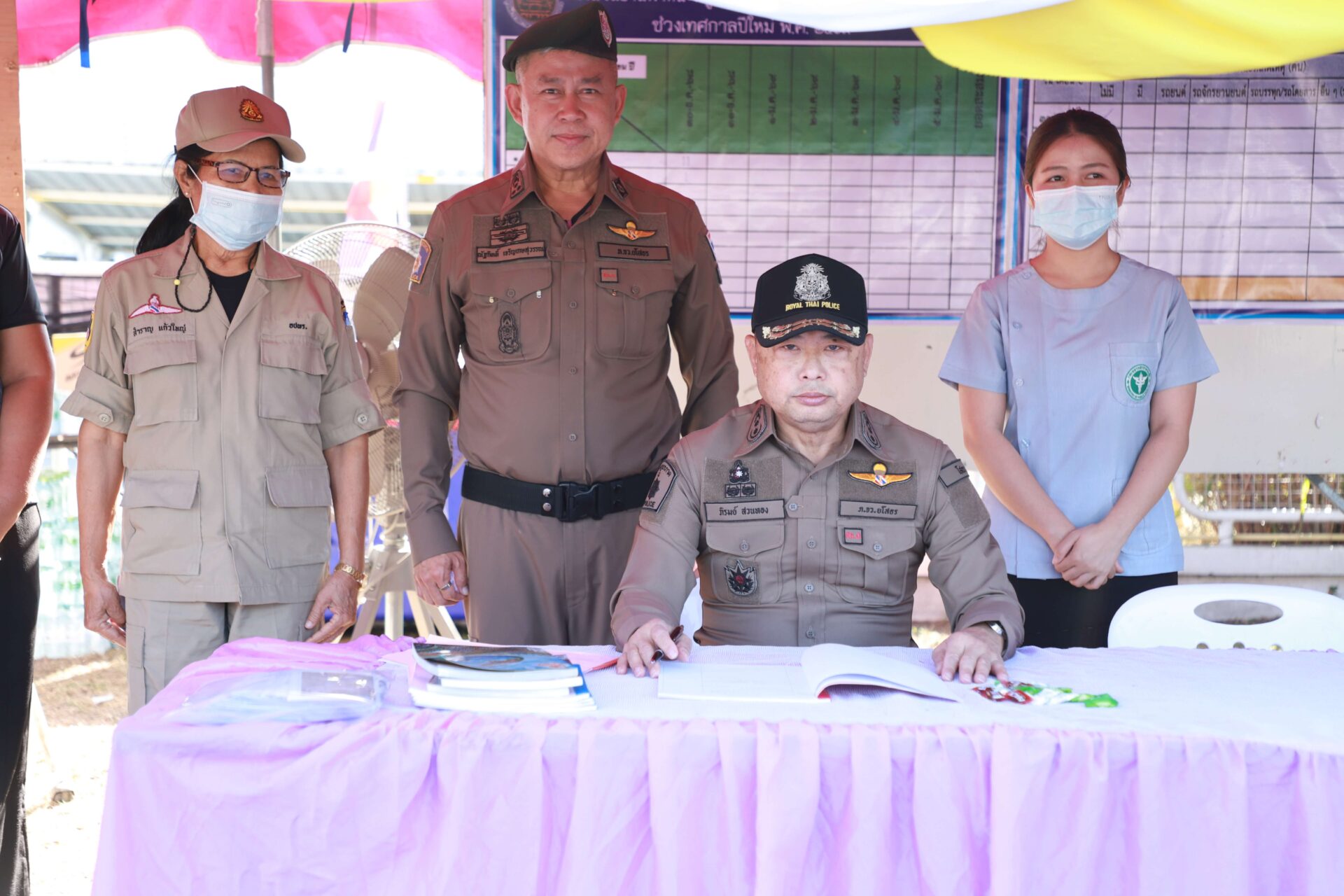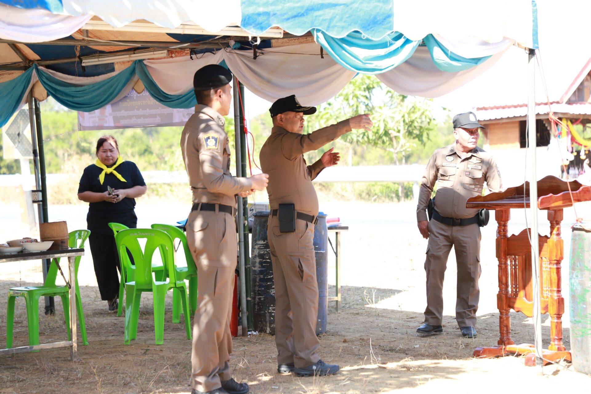 ได้มอบเครื่องดื่มชูกำลังและเงินสนับสนุนเจ้าหน้าที่ประจำจุด ในการนี้ได้ให้นโยบายในการปฏิบัติ ดังนี้