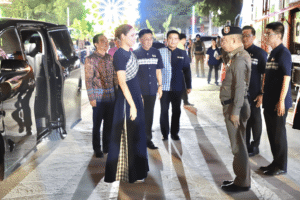 พล.ต.ต.ภิรมย์ สวนทอง ผบก.ภ.จว.ยโสธร พร้อมด้วยข้าราชการตำรวจผู้ปฏิบัติหน้าที่อำนวยความสะดวกด้านการจราจร และรักษาความปลอดภัย ร่วมให้การต้อนรับ นางสาวซาบีดา ไทยเศรษฐ์ รัฐมนตรีว่าการกระทรวงวัฒนธรรม เนื่องในโอกาส เดินทางมาปฏิบัติราชการ เป็นประธานเปิดงาน เทศกาลจุดไฟตูมกา หนึ่งเดียวในโลก จังหวัดยโสธร ประจำปี 2568