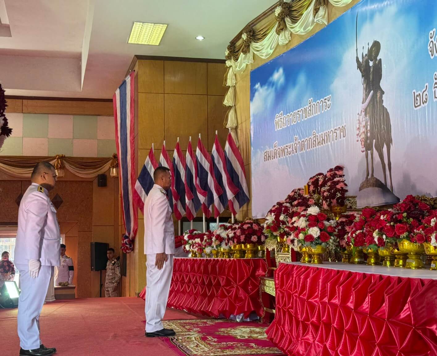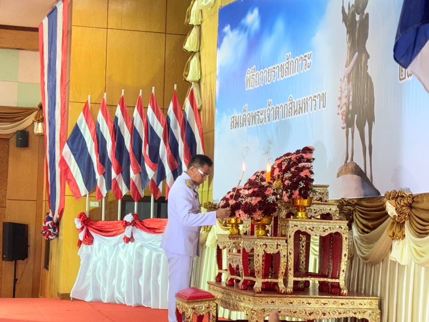 วันที่ 28 ธ.ค. 68 เวลา 07.00 น. ว่าที่ พ.ต.อ.ณฐพงศ์ แก้วเหลา ผกก.(สอบสวน)กลุ่มงานสอบสวน ภ.จว.ยโสธร พร้อมข้าราชการตำรวจในสังกัด เข้าร่วมงานรัฐพิธีวันสมเด็จพระเจ้าตากสินมหาราช ประจำปี 2568 โดยมี นายขรรค์ชัย ทันธิมา รองผู้ว่าราชการจังหวัดยโสธร เป็นประธาน ณ หอประชุมจังหวัดยโสธร ศาลากลางจังหวัดยโสธร