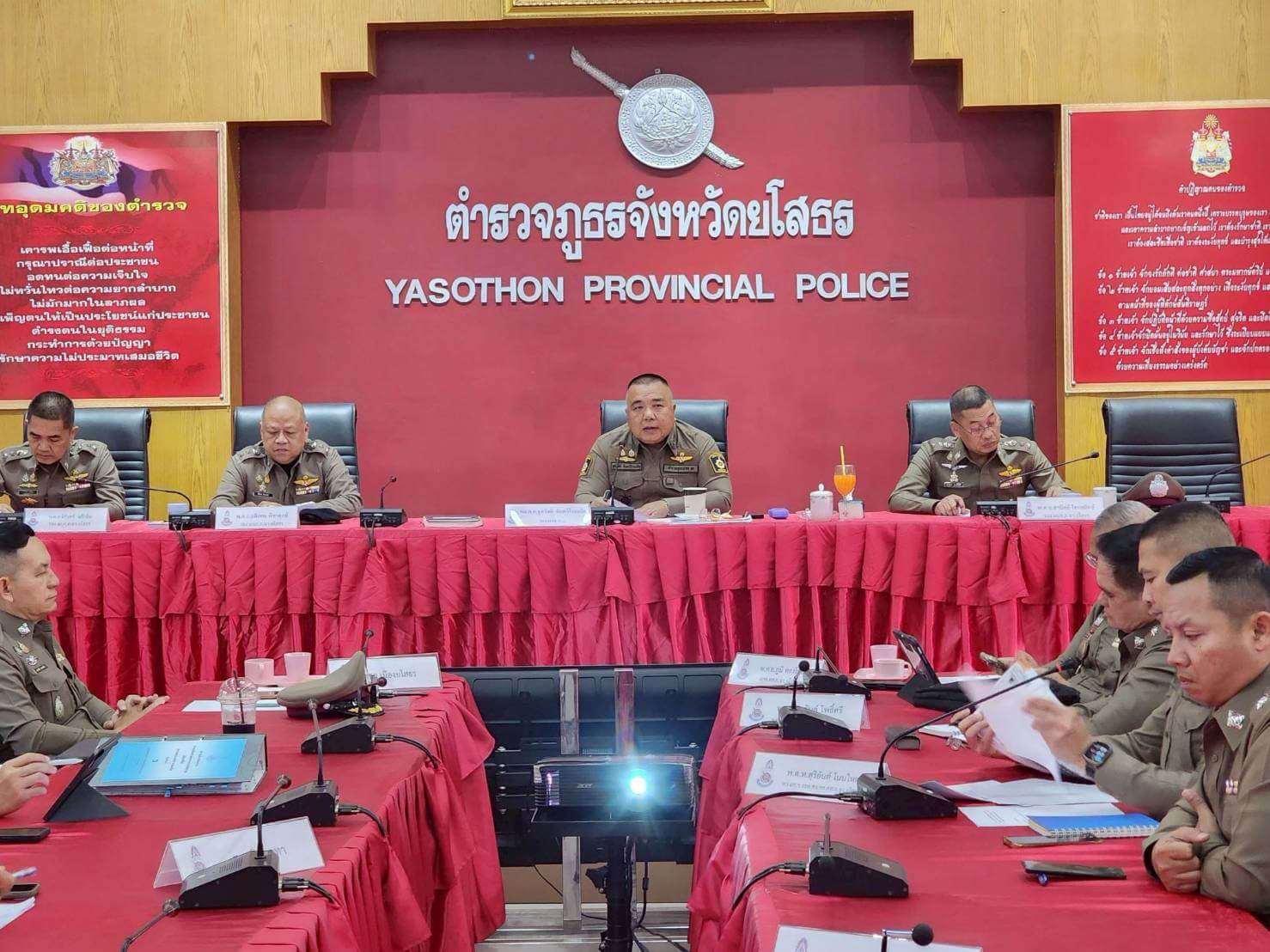วันที่ 21 ม.ค.69 เวลา 09.00 น. พล.ต.ต.ชูสวัสดิ์ จันทร์โรจนกิจ รอง ผบช.ภ.3 เดินทางมาตรวจราชการ และเป็นประธานในการประชุม ตรวจติดตามผลการดำเนินงานด้านยาเสพติดในพื้นที่ ภ.จว.ยโสธร โดยมี พ.ต.อ.อดิเทพ พิชาดุลย์ รอง ผบก.ภ.จว.ยโสธร,พ.ต.อ.สานิตย์ ไชยสถิตย์ รอง ผบก.ภ.จว.ยโสธร , พ.ต.อ.นิรันดร์ แก้วอิน รอง ผบก.ภ.จว.ยโสธร ,พ.ต.อ.ภูมิ ทองโพธิ์ ผกก.สส.ภ.จว.ยโสธร, พ.ต.อ.ประสิทธิ์ เพชรรัตน์ ผกก.สภ.เมืองยโสธร พร้อม หน.งานสอบสวน ,รอง ผกก.สส.ฯ สภ.ในสังกัด ภ.จว.ยโสธร และเจ้าหน้าที่ที่เกี่ยวข้อง ร่วมให้การต้อนรับและเข้าร่วมประชุม ณ ห้องประชุม ภ.จว.ยโสธร