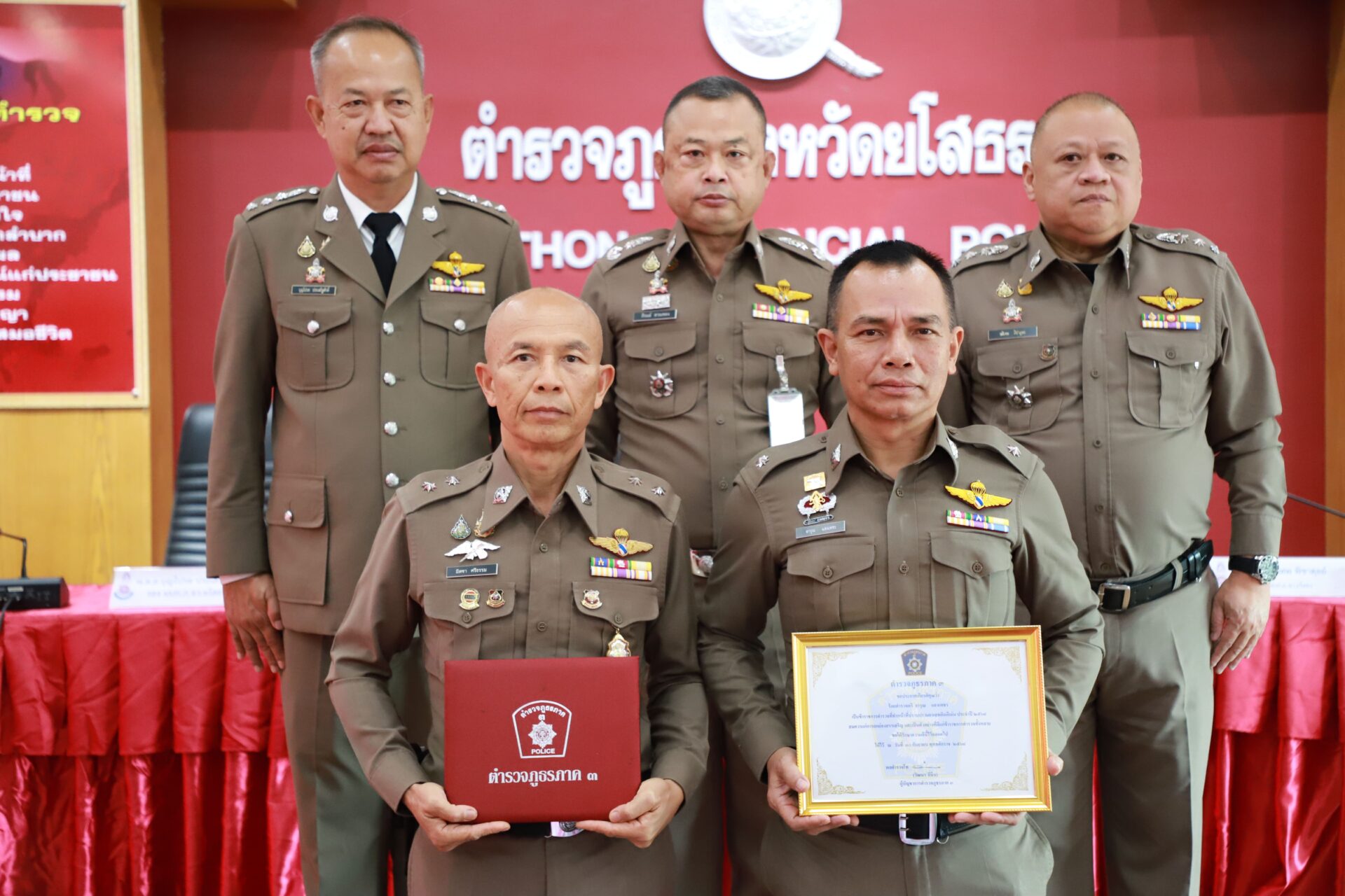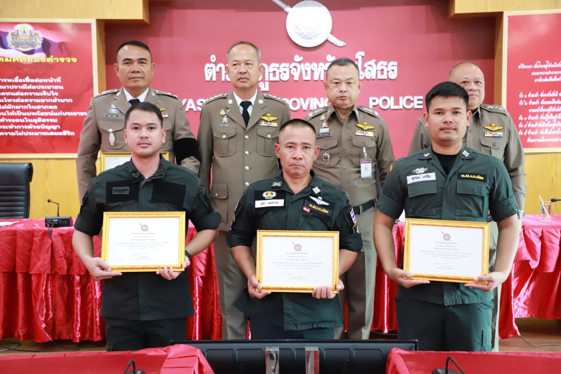 ร่วมการประชุมบริหารตำรวจภูธรจังหวัดยโสธร ประจำเดือน ธันวาคม พ.ศ.2568 โดยมีข้อสั่งการให้มีผลดำเนินการตามนโยบายและขับเคลื่อนตามข้อสั่งการของผู้บังคับบัญชา ตร., ภ.3 มีผลการปฏิบัติตามตัวชี้วัดที่ผู้บังคับบัญชากำหนด พร้อมกันนี้ได้จัดพิธีมอบประกาศเกียรติคุณแก่ข้าราชการที่มีผลการปฏิบัติงานดีเด่น และมอบเครื่องหมายเข็มเชิดชูเกียรติผู้ปฏิบัติหน้าที่ครูตำรวจแดร์ ประจำปี 2568
