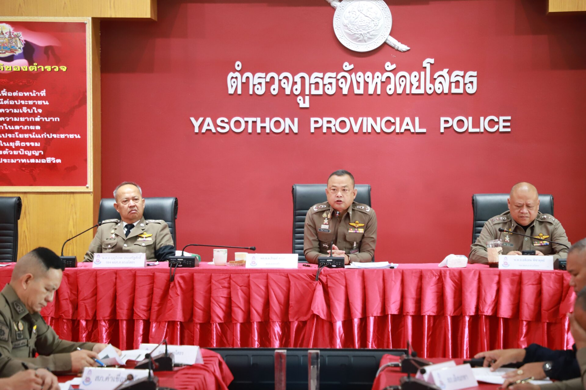 วันที่ 11 ธ.ค.68 เวลา 10.00 น. พล.ต.ต.ภิรมย์ สวนทอง ผบก.ภ.จว.ยโสธร พร้อมด้วย พ.ต.อ.เศวก โพนทัน รอง ผบก.ภ.จว.ยโสธร, พ.ต.อ.อดิเทพ พิชาดุลย์ รอง ผบก.ภ.จว.ยโสธร, พ.ต.อ.บุญโปรด ประเสริฐศักดิ์ รอง ผบก.ภ.จว.ยโสธร, พ.ต.อ.ภูมิ ทองโพธิ์ ผกก.สส.ภ.จว.ยโสธร, พ.ต.อ.ณัฐพงศ์ แก้วเหลา ผกก.(สอบสวน)กลุ่มงานสอบสวน ภ.จว.ยโสธร, หน.สภ.ในสังกัด และ ฝอ.ภ.จว.ยโสธร