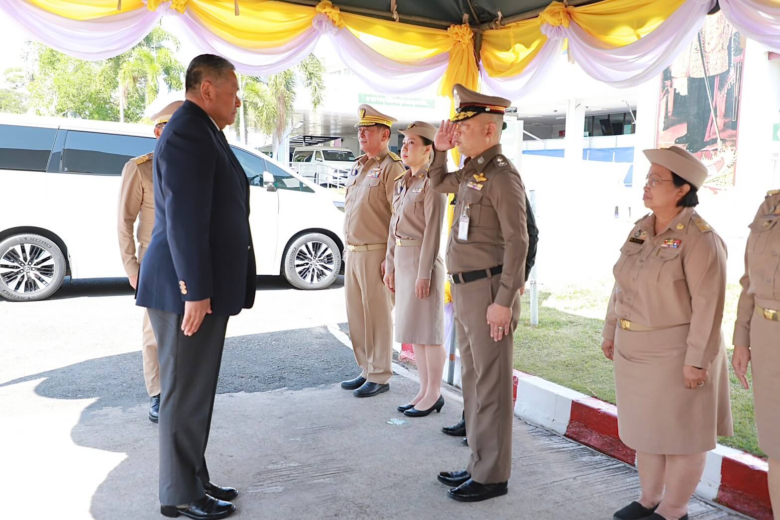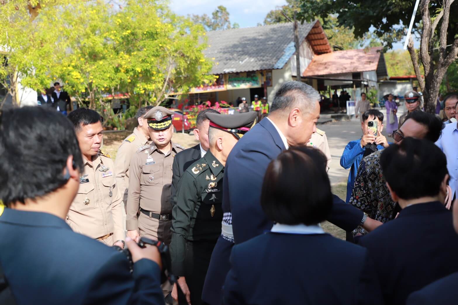 พล.ต.ต.ภิรมย์ สวนทอง ผบก.ภ.จว.ยโสธร พร้อมด้วย พ.ต.อ.สงบ พิมพ์มลัย ผกก.สภ.เลิงนกทา, ข้าราชการตำรวจจิตอาสา, ข้าราชการตำรวจผู้ปฏิบัติหน้าที่อำนวยความสะดวกด้านการจราจร และรักษาความปลอดภัยฯ ร่วมให้การต้อนรับ ท่านพลากร สุวรรณรัฐ องคมนตรี รองประธานกรรมการมูลนิธิโรงพยาบาลสมเด็จพระยุพราช และคณะกรรมการมูลนิธิ เนื่องในโอกาสเดินทางมา ปฏิบัติราชการในพื้นที่ จว.ยโสธร เพื่อตรวจเยี่ยมติดตามการดำเนินงาน “การตรวจเยี่ยมการพัฒนาโรงพยาบาลสมเด็จพระยุพราชเลิงนกทา ประจำปี 2569 ”