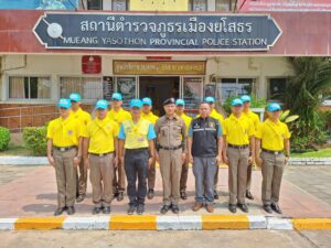 วันที่ 4 พ.ค. 67 เวลา 09.00 น. พ.ต.อ.บุรภัช บุรีภักดี รอง ผบก.ภ.จว.ยโสธร ได้เดินทางมาตรวจเยี่ยม สภ.เมืองยโสธร พบ พ.ต.ท.สิงหา สุตาสุข สวป.สภ.เมืองยโสธร, พ.ต.ท.สมถวิล แสนโคตร สว.อก.ฯ, พ.ต.ต.วุฒิพงษ์ สุดสีเลี้ยง สว.สส.ฯ, เจ้าหน้าที่ตำรวจในสังกัด, และนักเรียนนายสิบตำรวจฝึกปฏิบัติราชการ อยู่ปฏิบัติหน้าที่ จึงประชุมกำชับการปฏิบัติหน้าที่ กวดขันเรื่องระเบียบวินัยพร้อมบันทึกลงในสมุดตรวจเยี่ยม ณ ห้องประชุม ศปก.สภ.เมืองยโสธร