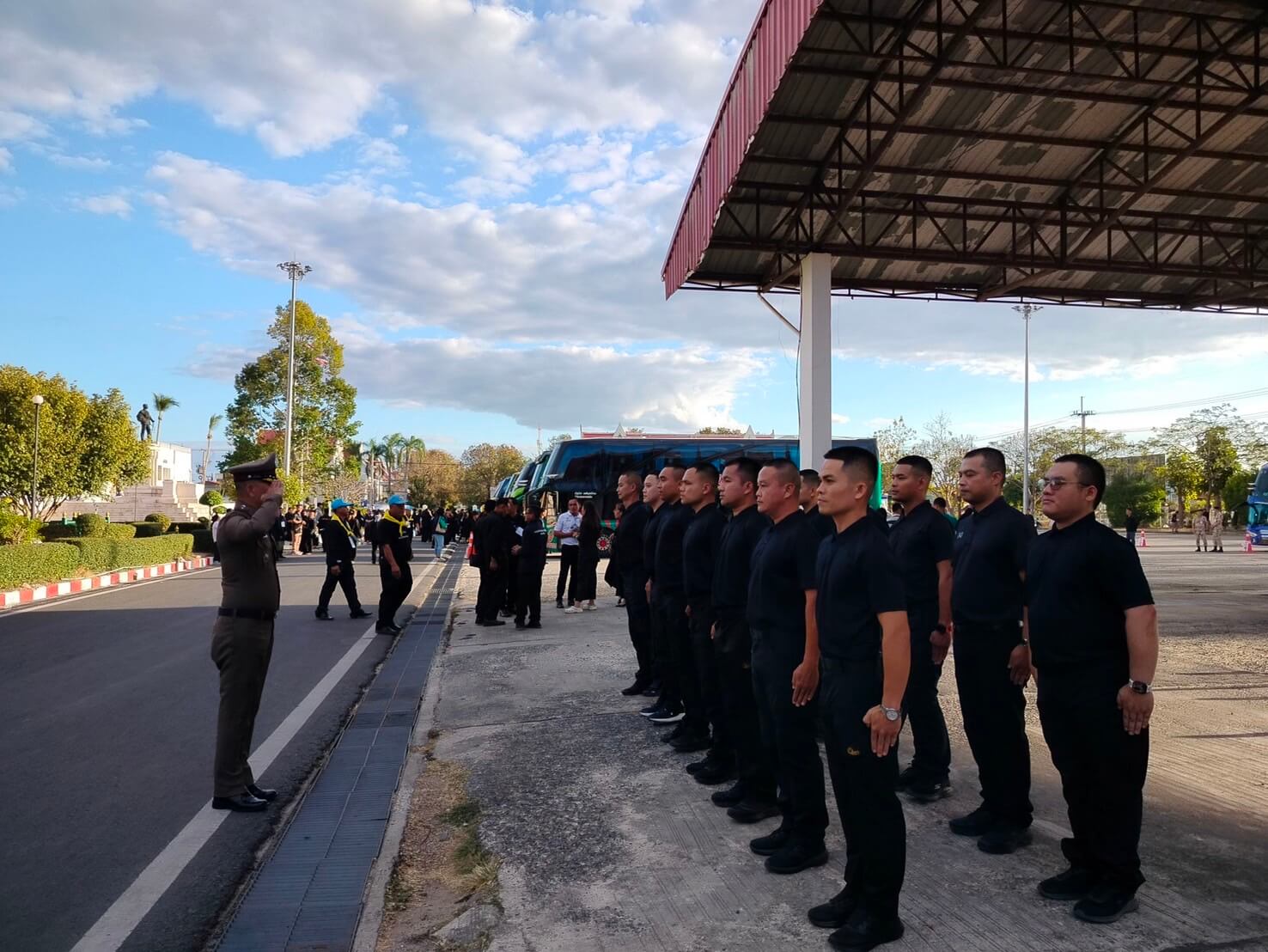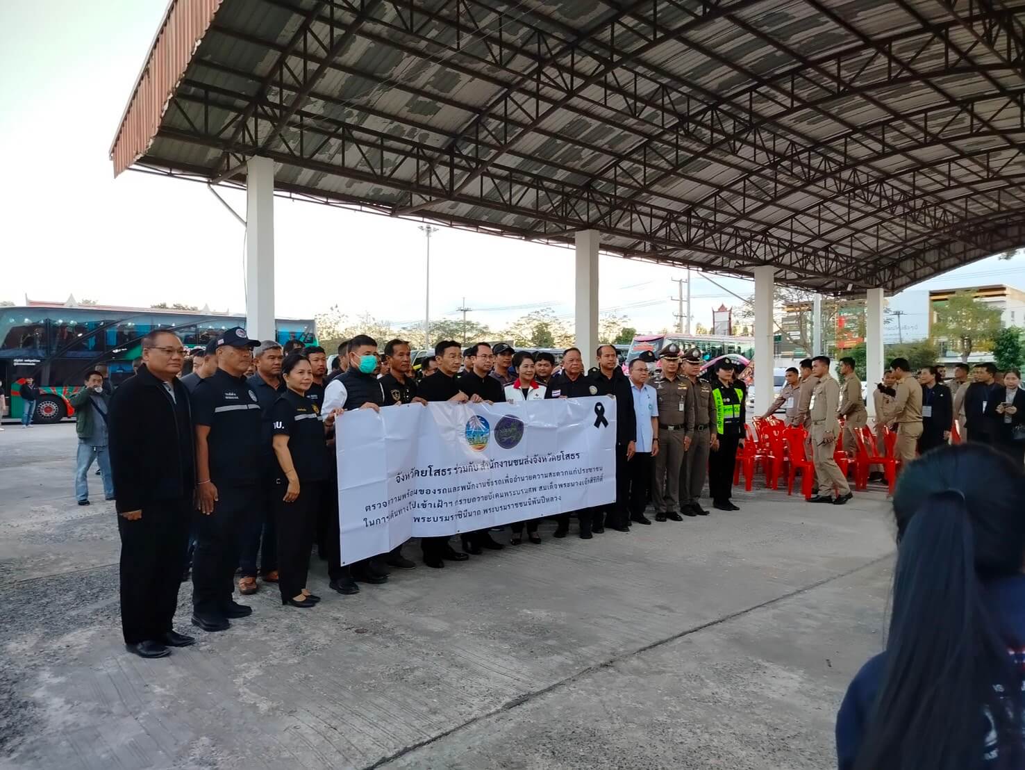 พ.ต.อ.สานิตย์ ไชยสถิตย์ รอง ผบก.ภ.จว.ยโสธร พร้อมด้วย ว่าที่ พ.ต.อ.ณัฐฐ์ฐนนท์ สีฟ้า ผกก.สภ.มหาชนะชัย และ พ.ต.ท.ภณภัทร รัตนศรี รอง ผกก.สืบสวน ภ.จว.ยโสธร ประชุมชี้แจง การปฏิบัติภารกิจเพื่อดูแล ประชาชน และการปล่อยขบวนรถนำพาประชาชนเดินทางไป เข้าเฝ้าฯ กราบบังคมพระบรมศพ สมเด็จพระนางเจ้าสิริกิติ์ พระบรมราชินีนาถ พระบรมราชชนนีพันปีหลวง โดยมี เจ้าหน้าที่ประกอบด้วย ข้าราชการตำรวจผู้ปฏิบัติหน้าที่ถวายความปลอดภัยในพื้นที่ (Local CAT) จำนวน 19 นาย ข้าราชการตำรวจทำหน้าที่พลขับปิดท้ายขบวน, ข้าราชการฝ่ายปกครอง, สาธารณสุข,สำนักงานขนส่งจังหวัดยโสธร และองค์กรปกครองส่วนท้องถิ่น เพื่อทำหน้าที่รักษาความปลอดภัยและอำนวยความสะดวกการจราจร ให้แก่ประชาชนฯ จำนวน 750 คน รถบัส จำนวน 19 คัน