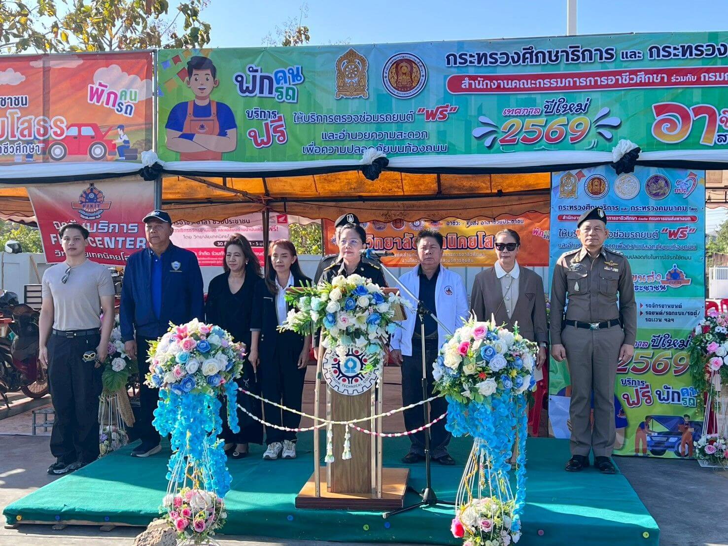 วันที่ 30 ธ.ค.68 เวลา 09.00 น. พ.ต.อ.เศวก โพนทัน รอง ผบก.ภ.จว.ยโสธร พร้อมด้วย พ.ต.อ.ประสิทธิ์ เพชรรัตน์ ผกก.สภ.เมืองยโสธร เข้าร่วมพิธีเปิดโครงการ “อาชีวะ – ขนส่ง อาสาช่วยประชาชน เทศกาลปีใหม่ 2569” ณ บริษัท เค.ซี. ปิโตรเลียม ยโสธร จำกัด (สาขาน้ำคำใหญ่)