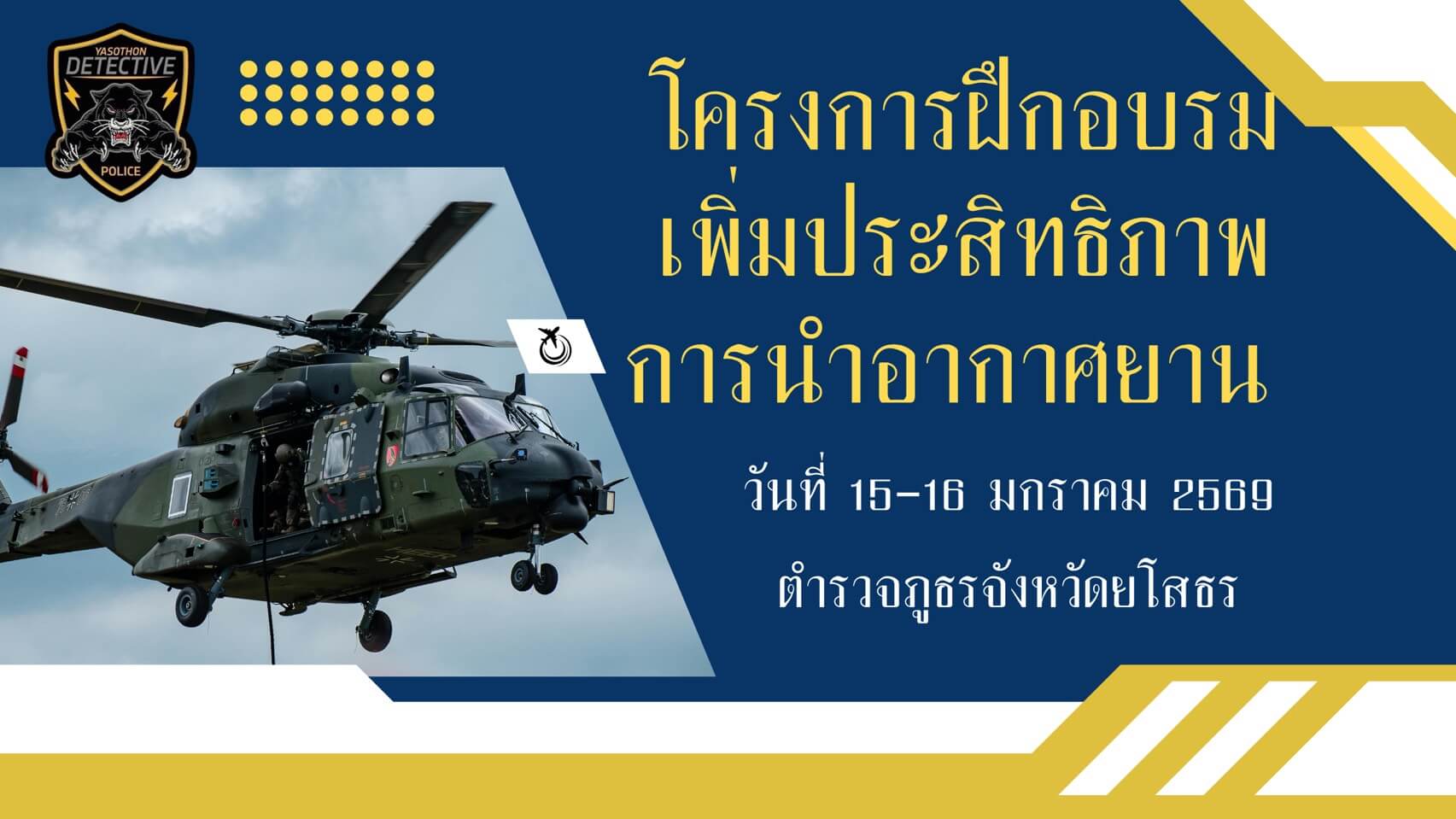 ร่วมพิธีเปิดการฝึกอบรมโครงการเพิ่มประสิทธิภาพผู้อำนวยอากาศยาน ตำรวจภูธรจังหวัดยโสธร ประจำปีงบประมาณ 2569 โดยมี พ.ต.อ.เศวก โพนทัน รอง ผบก.ภ.จว.ยโสธร เป็นประธานในพิธี ณ ห้องประชุม ภ.จว.ยโสธร ต.ในเมือง อ.เมืองยโสธร จว.ยโสธร